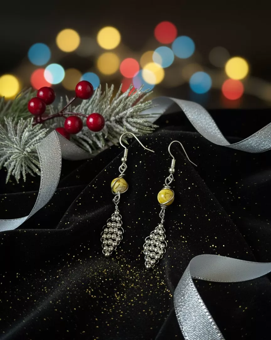 Boucles d'Oreilles "Pommes de Pin & Ambre Étincelant"