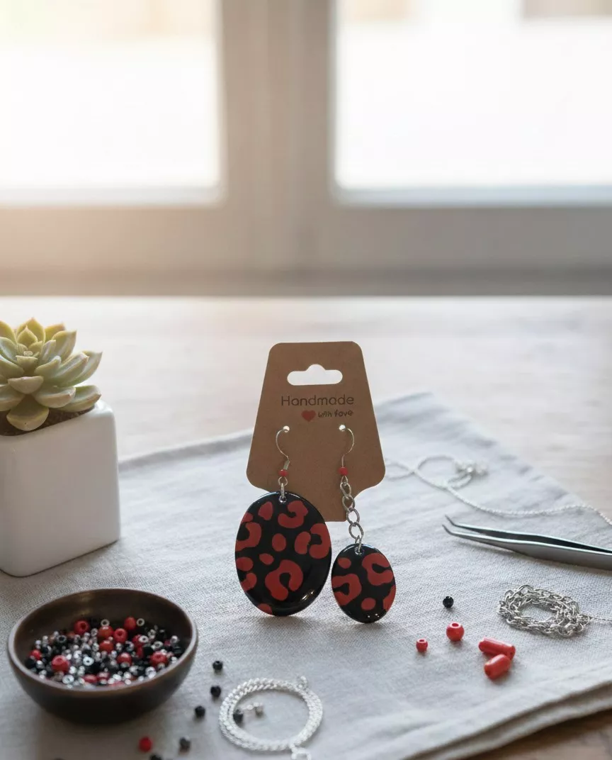 Boucles d'Oreilles Tendance "Léopard Rouge & Noir"
