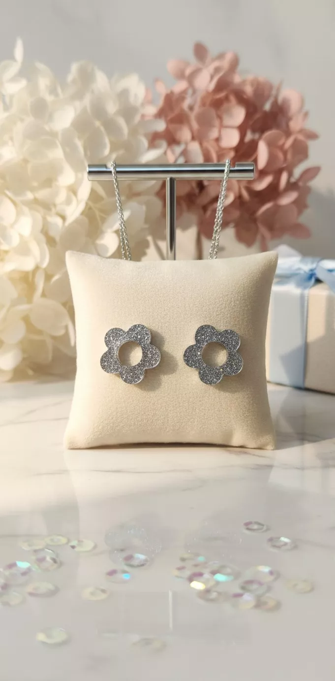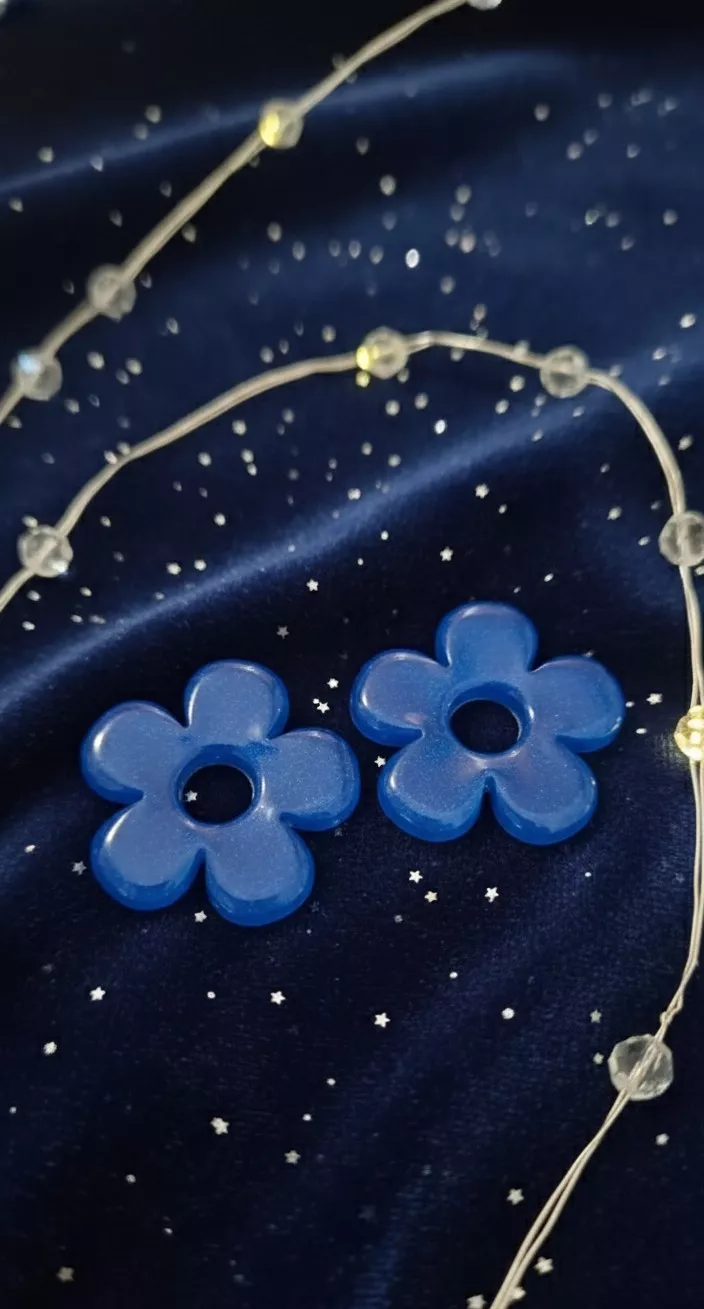Boucles d'Oreilles Circulaires Pailletées – Motif Fleur Bleue