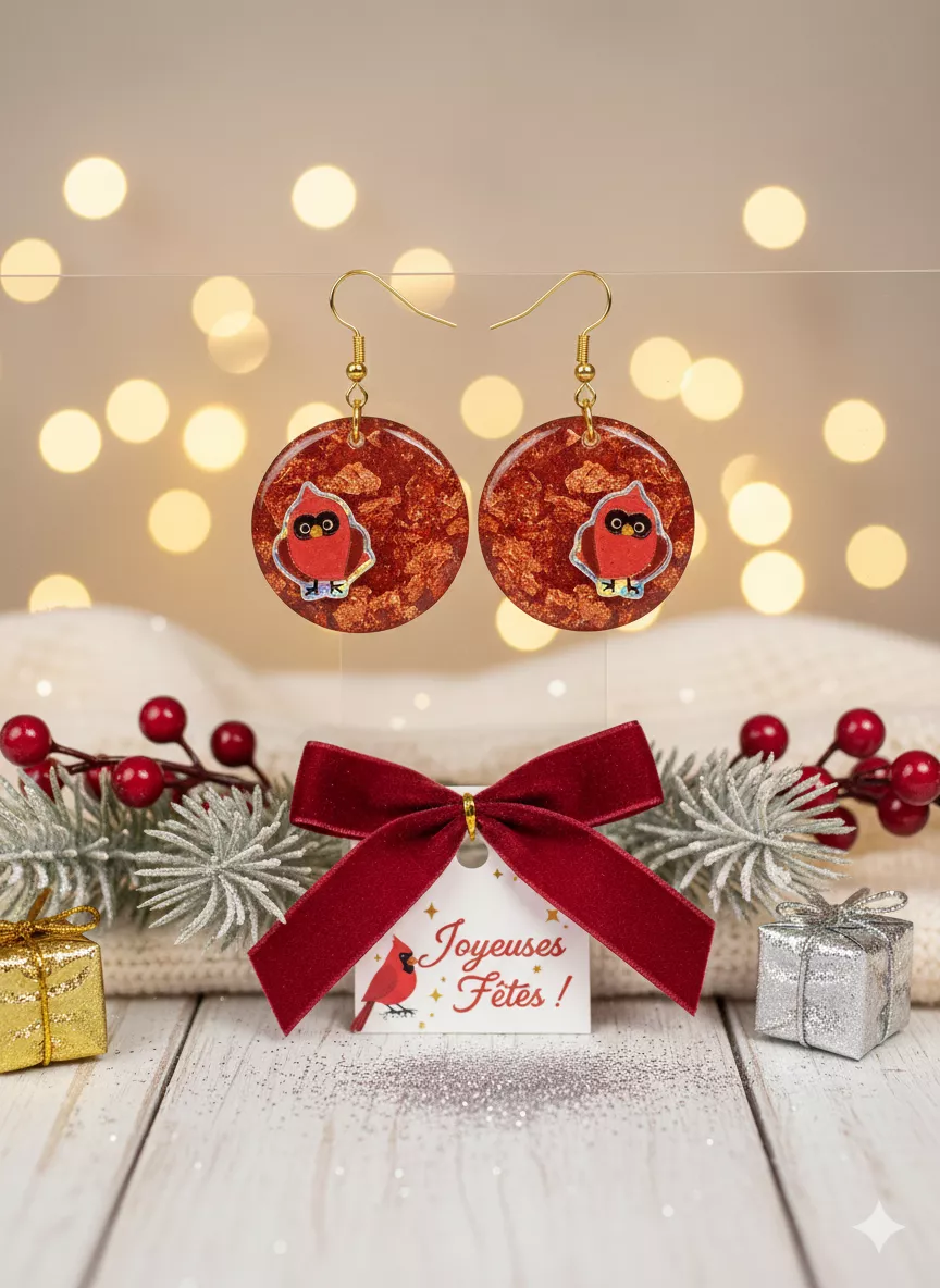 Boucles d'Oreilles Ronds "Cardinal de Noël"