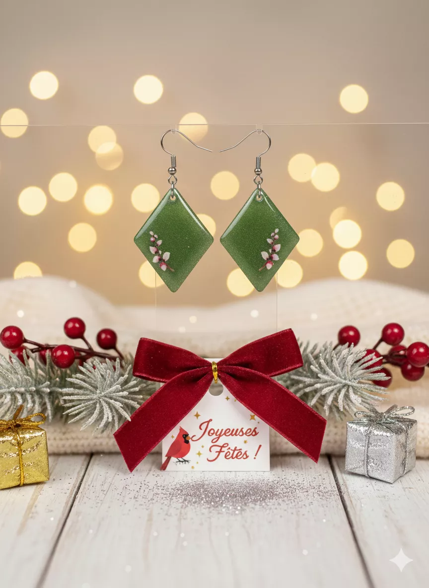Boucles d'Oreilles Carrées "Fête d'Hiver"