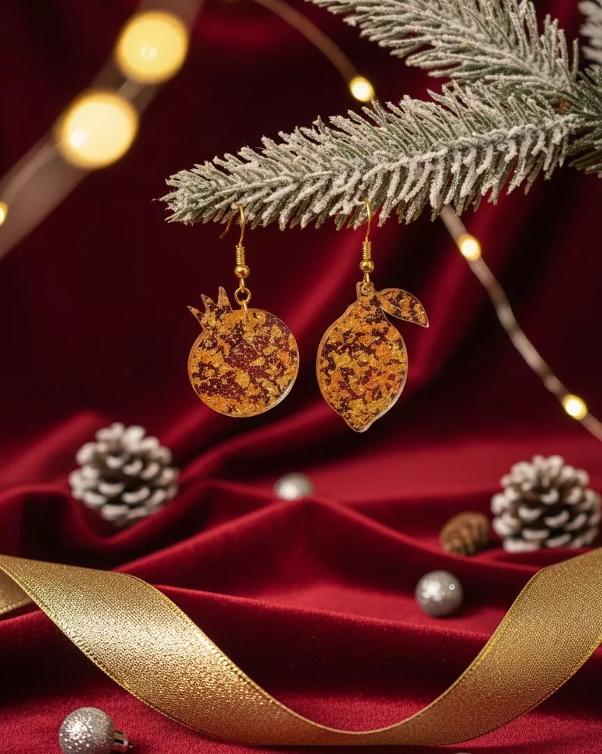 Boucles d'Oreilles "Fruits Exotiques Dorés" – Collection Fêtes