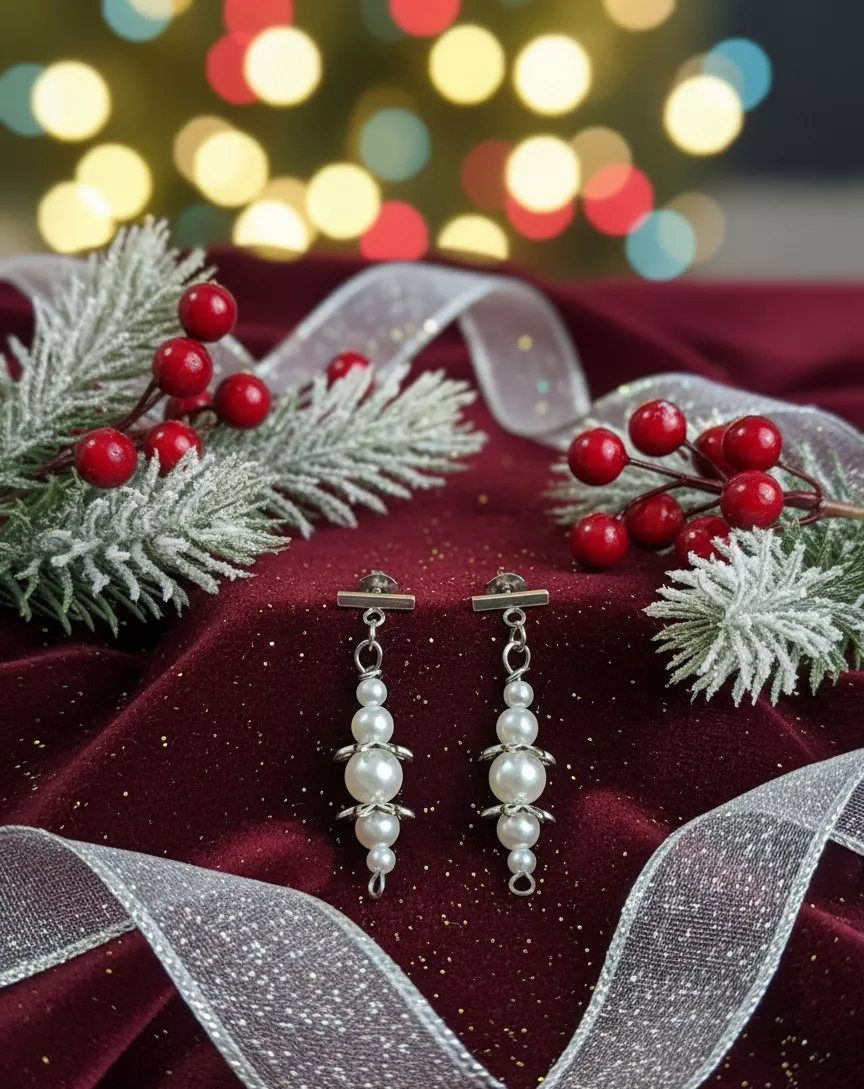 Boucles d'Oreilles Tiges "Goutte de Perles Hivernales"