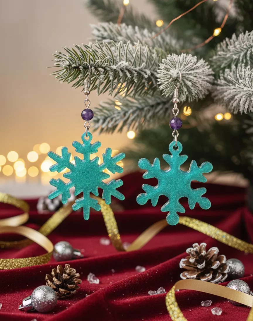 Boucles d'Oreilles "Flocons de Neige Émeraudes"