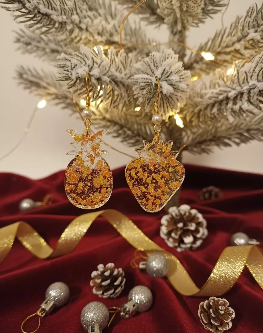 Boucles d'Oreilles "Fruits Exotiques Dorés" – Collection Fêtes
