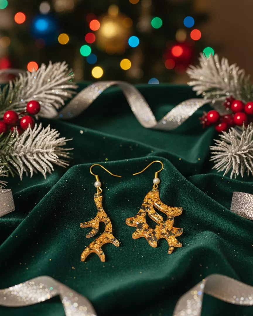 Boucles d'Oreilles Asymétriques "Bois de Cerf Dorés"