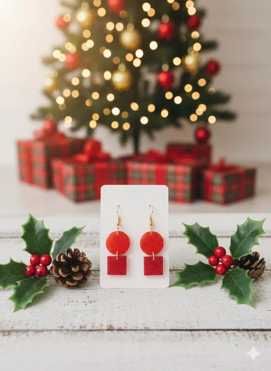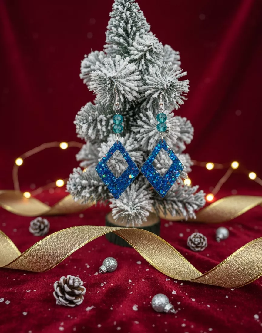 Boucles d'Oreilles Carrées "Fête d'Hiver"