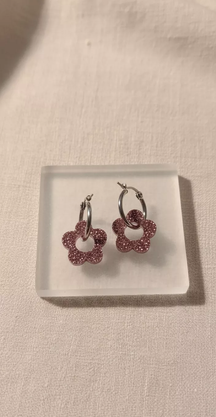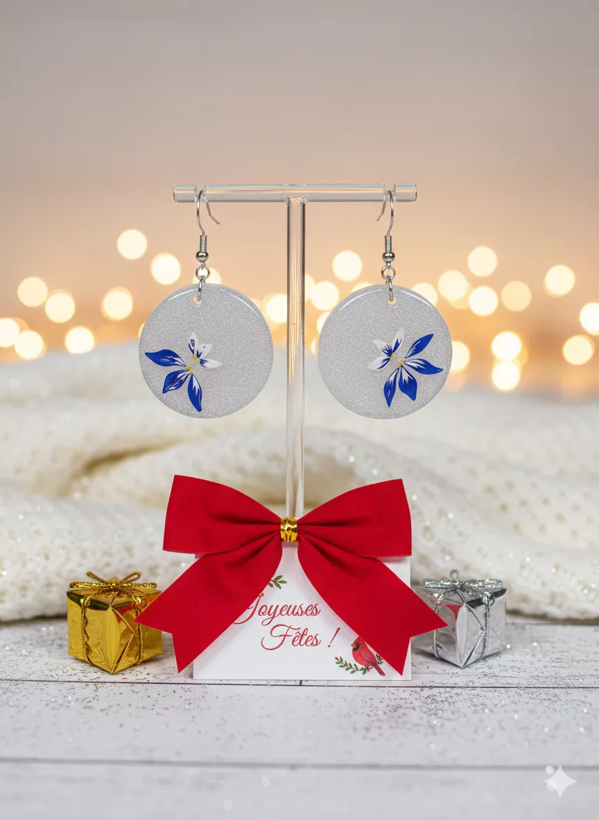 Boucles d'Oreilles Circulaires Pailletées – Motif Fleur Bleue