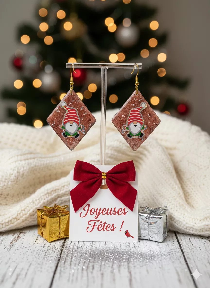 Boucles d'Oreilles Losange "Petit Gnome de Noël"
