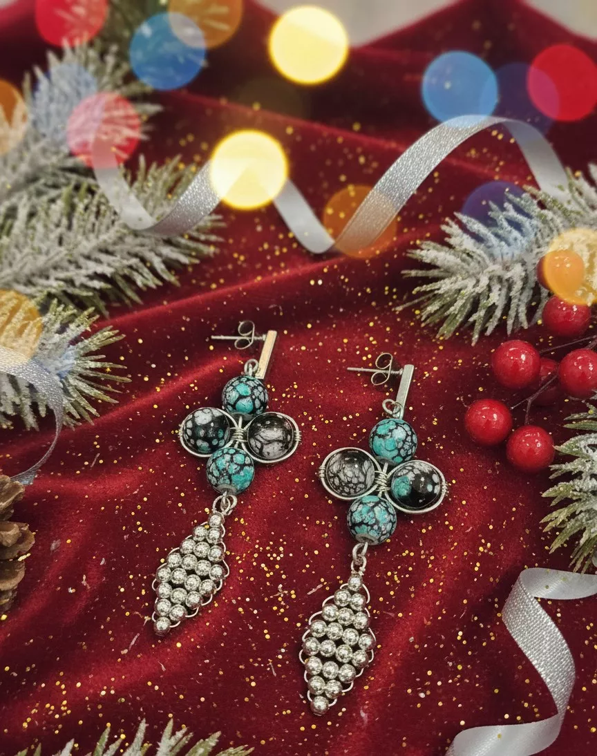 Boucles d'Oreilles Asymétriques "Neige et Perles Turquoises"